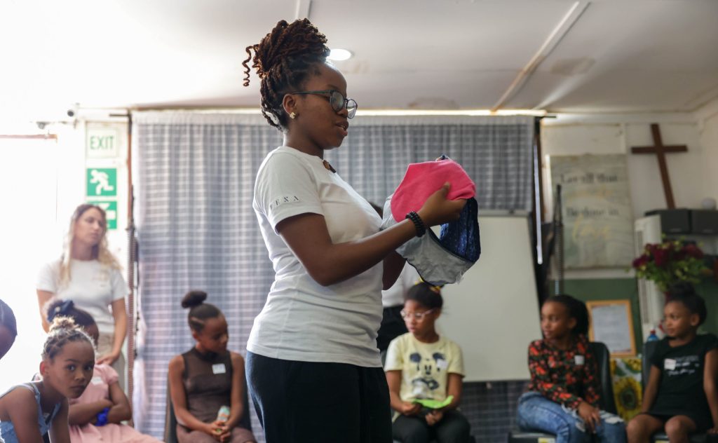 We make reusable and single-use pads available to women at our big pad handouts. We are giving them agency and access to the products they need.